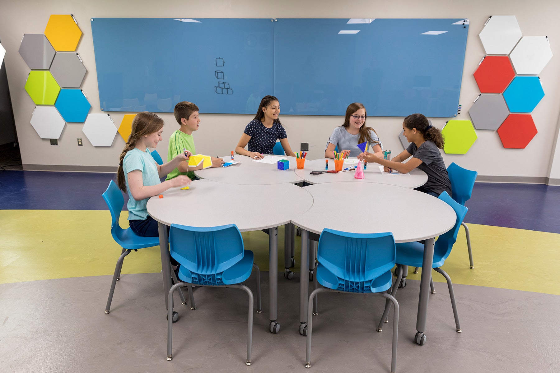 Available in a wide range of top surfaces and frame colors to complement Muzo’s K-Seating and other modular furniture.